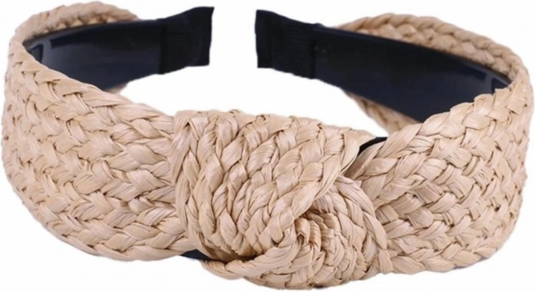 Rattan hajpánt feltűnő díszcsomóval. Belül egy szabványos műanyag hajpánt található.