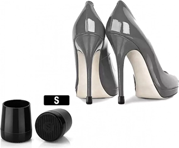Egy pár védő toldat magas sarkakhoz. Hatékonyan védi a tűsarkúkat a sérüléstől és a kopástól. Csökkenti a jellegzetes kopogó hangot és a megcsúszás kockázatát. Megóvja a padlókat és a felületeket a karcolásoktól.