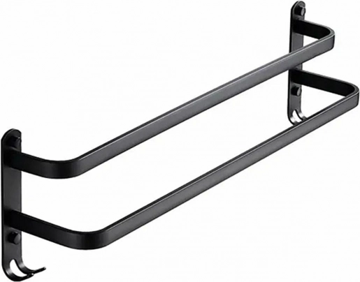 Stílusos fali, fém törölközőtartó modern loft stílusban. Tartós, porszórt felületű alumíniumból készült matt fekete színben, ami hosszú élettartamot, valamint nedvességgel és kopással szembeni ellenállást biztosít. Ez a praktikus fürdőszobai kiegészítő két karral a törölközők számára és extra akasztókkal alul még több tárolóhelyet kínál.