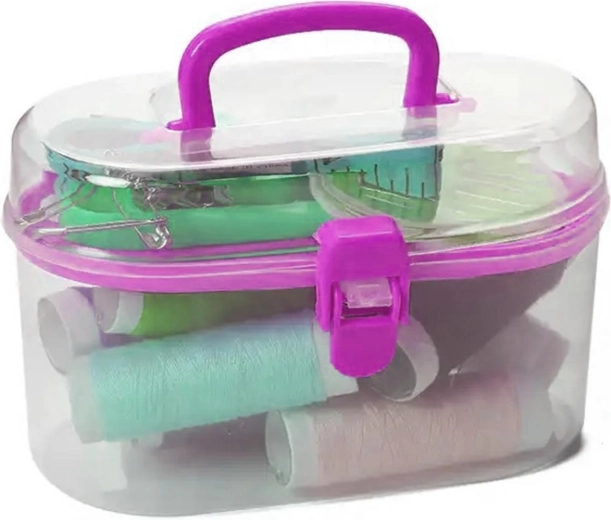 A készlet különböző alapvető varró eszközöket tartalmaz, amelyek megkönnyítik a varrást. Minden átláthatóan tárolva van egy zárható műanyag tokban, amely mérete 12,5 cm x 7,5 cm.