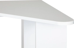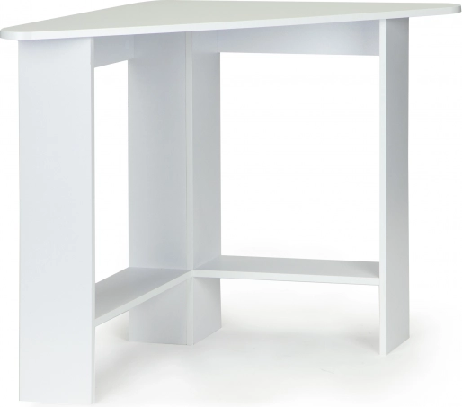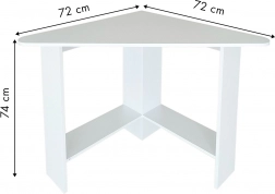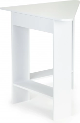 A modern sarokasztal ideális választás kisebb helyiségekbe, ahol minden centiméter számít. A háromszög alakú kialakítás könnyen a sarokba illeszthető, és letisztult vonalú, stabil munkafelületet hoz létre. Az asztallap és a polcok tartós, laminált forgácslapból készülnek, amelyek könnyen karbantarthatók és elegáns megjelenést biztosítanak.
