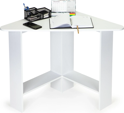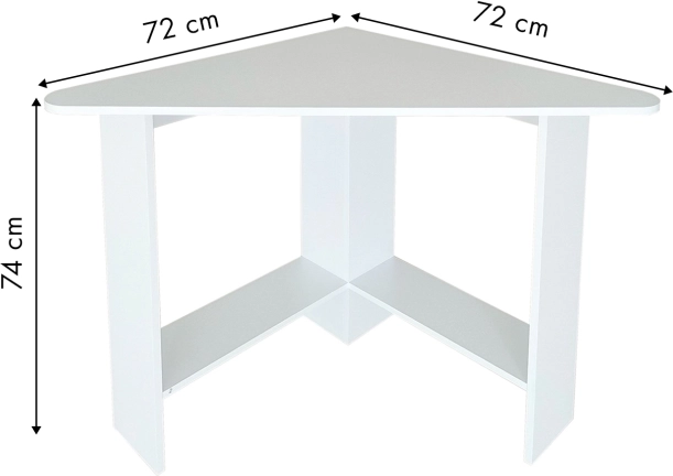 A háromszög alakú asztallapnak köszönhetően a bútor sarokba tolható, így a szoba, iroda vagy diáksarok rendelkezésre álló terét maximálisan kihasználja.