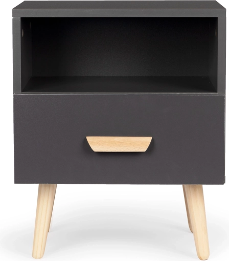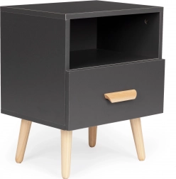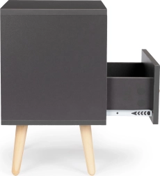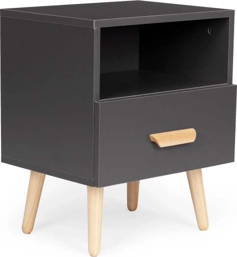 Az egy fiókból és egy nyitott polcból álló funkcionális elrendezés helyet biztosít könyveknek, telefonnak, ébresztőórának és apróságoknak, amelyeket szeretne kéznél tartani. A tartós, laminált felületek könnyen tisztíthatók, a masszív szerkezet pedig hosszú távú stabilitást biztosít.
