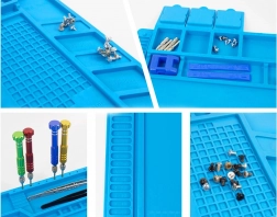 A szilikon szerviz alátétet úgy tervezték, hogy maximális kényelmet biztosítson az elektronika szerelésekor. Kiváló minőségű szilikonból készült, amely antistatikus és hőtűrő, így a forró szerszámok, mint például a forrasztópákák, nem károsítják a munkafelületet.