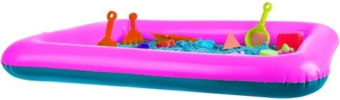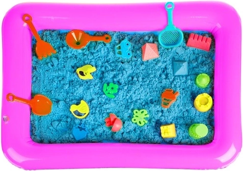 A varázslatos tulajdonságú gyerekhomok remek ajándékötlet minden gyermek számára. Ilyen homokkal otthon is nagyszerűen lehet játszani. Ha odakint fúj a szél, esik vagy havazik, semmi sem akadályozza a játékot – elég egy medence a varázshomokkal, és szabadjára engedhetitek a fantáziát! A gyerek homokszett 14 műanyag formát, gereblyét, szitát, lapátot és tölcsért tartalmaz – ilyen tartozékokkal nem lehet unatkozni. A készlet része a felfújható homokozó is, amely rendet tart a játszófelületen.