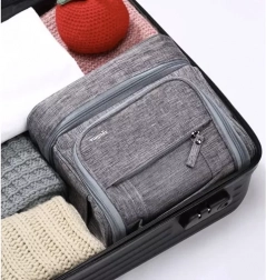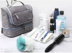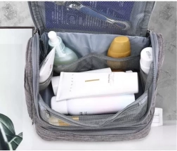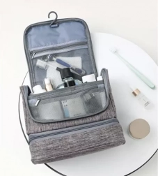 Ez a tágas kozmetikai táska a fontos személyes tárgyak tárolására és rendezésére készült, amelyeket utazáskor szükségesek. Vízálló és könnyen felakasztható egy megfelelő helyre a horognak köszönhetően.