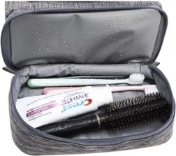 A táska olyan anyagokból készült, amelyek víztaszítók, ami ideális fürdőszobai vagy utazási használatra.