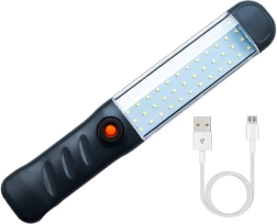Kompakt műhely LED lámpa COB technológiával és 48 diódával, amely erős és egyenletes megvilágítást biztosít műhelyben, autóban és otthon. A USB-n keresztül újratölthető akkumulátornak, a forgatható akasztónak és a erős mágneseknek köszönhetően bárhová könnyen rögzíthető, így szabadon hagyja a kezeit. Az ergonomikus markolat és a több fényerő üzemmód kényelmes és takarékos használatot biztosít.