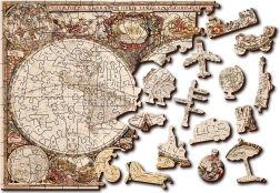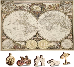 Az antik térkép motívumú fa kirakó örömet szerez az eredeti kirakók kedvelőinek és a különleges ajándékok gyűjtőinek. A kétrétegű, 2 az 1-ben kivitelnek köszönhetően kirakhatja az előlapi képet, vagy kipróbálhatja a hátoldalt ismétlődő mintával, kizárólag az elemek formája alapján.