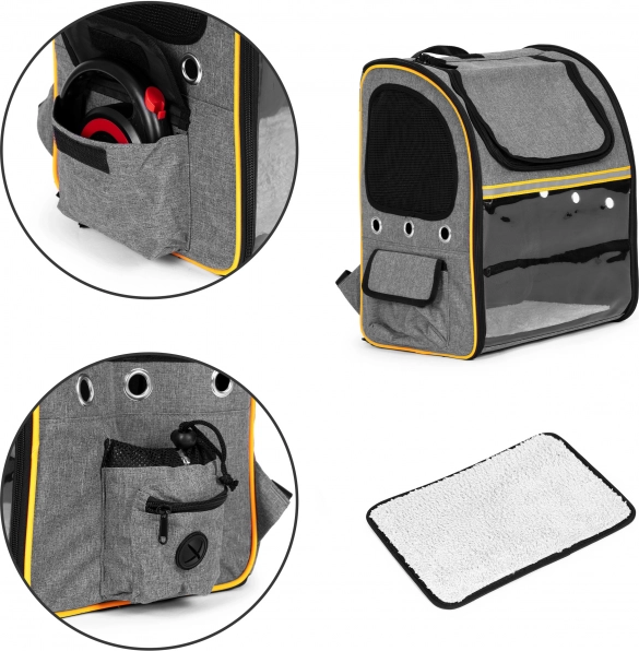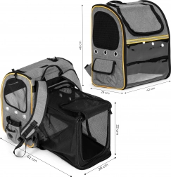 Utazzon kedvencével biztonságban és kényelemben. Ez a tágas hátizsák a masszív és biztonságos felépítést okos részletekkel ötvözi az Ön és az állat kényelméért. Az átlátszó előlapi panelnak köszönhetően társa figyelheti a környezetet, miközben a hálós panelek és a szellőzőnyílások állandó friss levegőt biztosítanak.