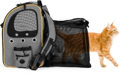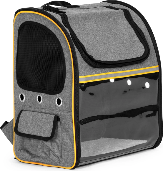 A „üveg” hatású átlátszó rész megnyugtatja az állatot a kilátással, míg a hálós panelek és a szellőzőnyílások folyamatos friss levegőt és kényelmet biztosítanak utazás közben.