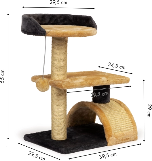A fa tetején egykilátó platform található, ami a puha plüss borításnak köszönhetően macskád kedvenc helyévé válik. A lógó játék órákig tartó szórakozást biztosít, és segít, hogy a macskák aktívak és boldogok legyenek.