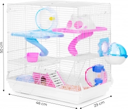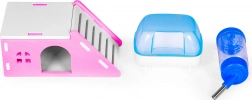 - házikó, 2× rámpa, futókerék, 4 szint, tál, itató