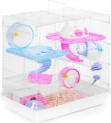 A négy szintet két rámpa köti össze, a beépített futókerék pedig támogatja a természetes aktivitást, és nap mint nap segít kiváló kondícióban tartani a rágcsálókat.
