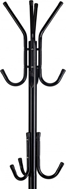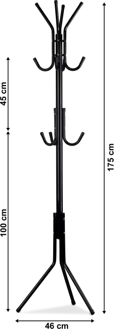 Fedezze fel az előszoba praktikus megoldását: a MODERNHOME álló ruhafogas fekete színben a masszív fém szerkezetet időtálló megjelenéssel ötvözi. A felső karok több dzsekit és kabátot is elbírnak, a középső akasztók kalapokhoz, esernyőkhöz és táskákhoz ideálisak, az alsó akasztók pedig gyerekek számára lettek kialakítva.