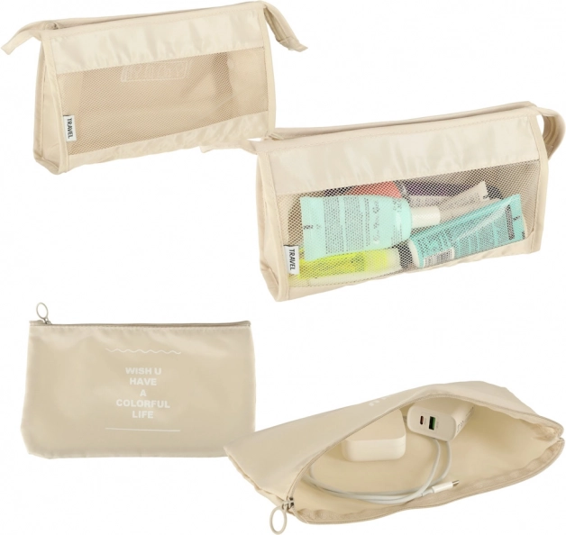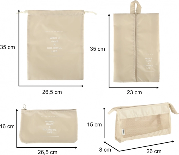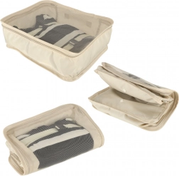 A rendezők könnyű és tartós poliészterből készülnek, amely könnyen tisztítható és jól ellenáll a szennyeződésnek. A szett ideális nyaralásokhoz, üzleti utakhoz és otthoni tároláshoz is.