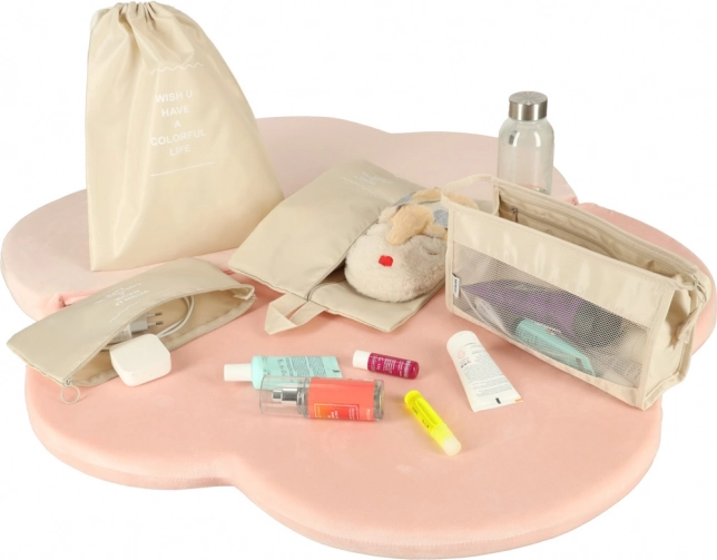 A szett része egy külön összehúzható cipőzsák, valamint kisebb zsebek a kozmetikumoknak és apró tárgyaknak, hogy mindent biztonságosan elkülönítve tarthasson.