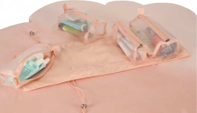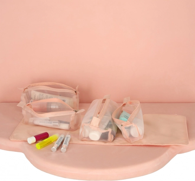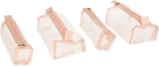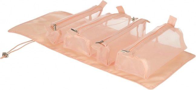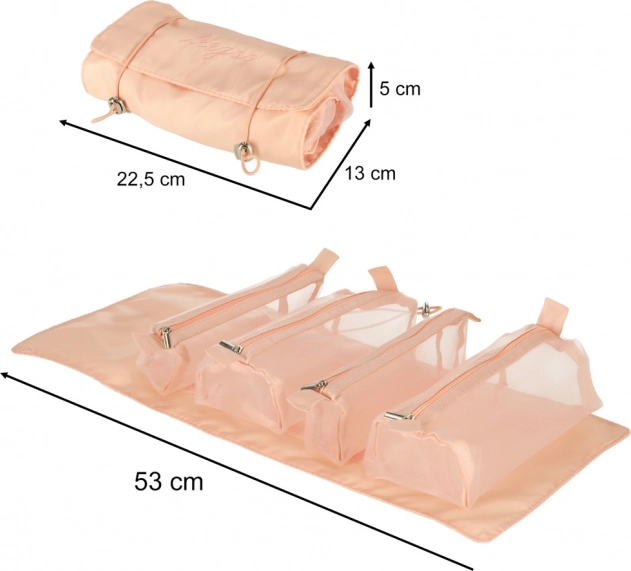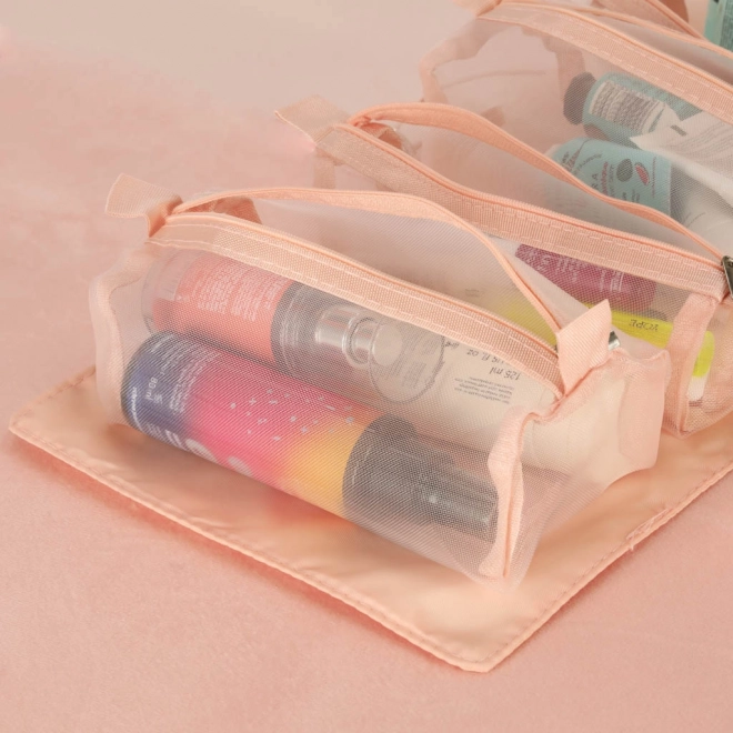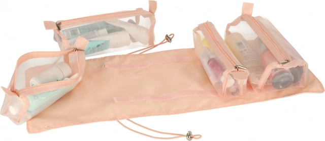 Ez a rózsaszín kozmetikai táska azok számára készült, akik kényelmet és hatékonyságot keresnek kozmetikai termékeik utazás közbeni rendszerezéséhez. A táska négy átlátszó, cipzáras rekesszel van felszerelve, amelyek könnyű hozzáférést és jó rálátást biztosítanak a tartalomra. A rekeszek teljesen kivehetők, ami nagyfokú variálhatóságot nyújt.