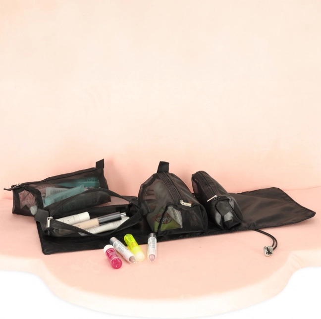 A hálós oldalak megkönnyítik a kozmetikumok megtalálását és jó szellőzést biztosítanak a nedves csomagolásoknak.
