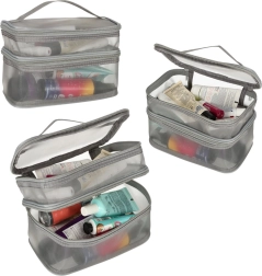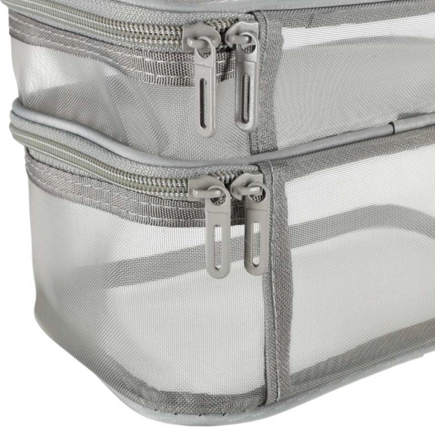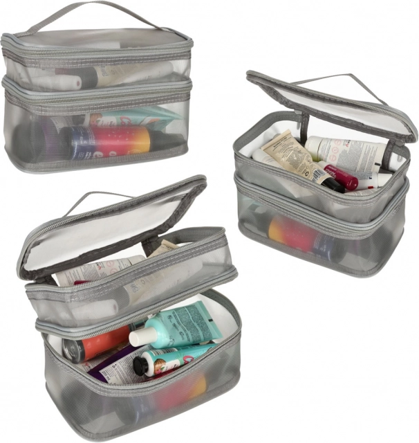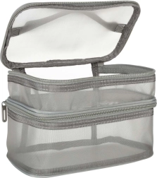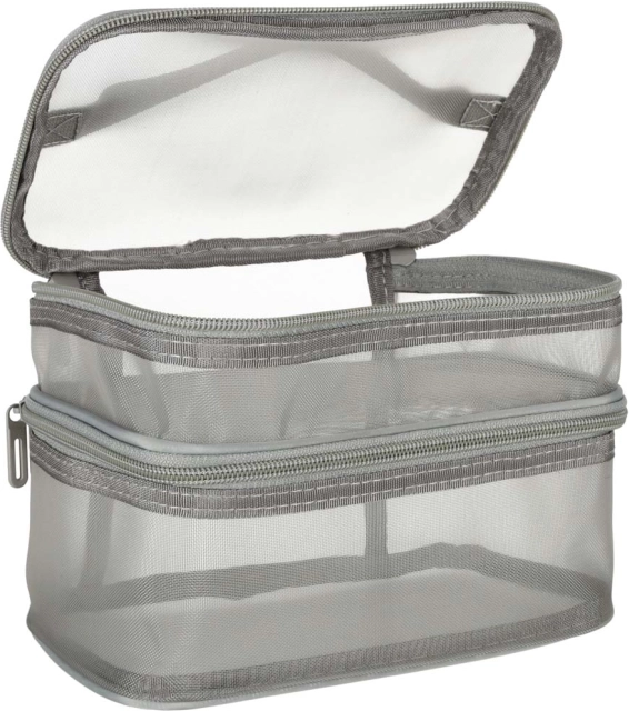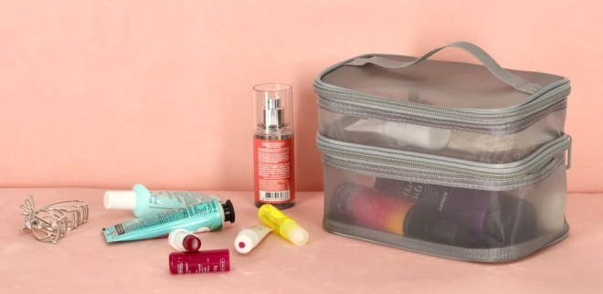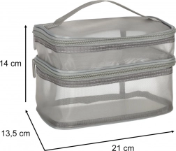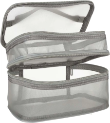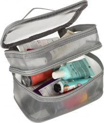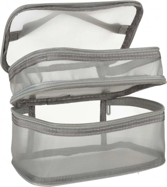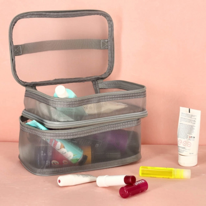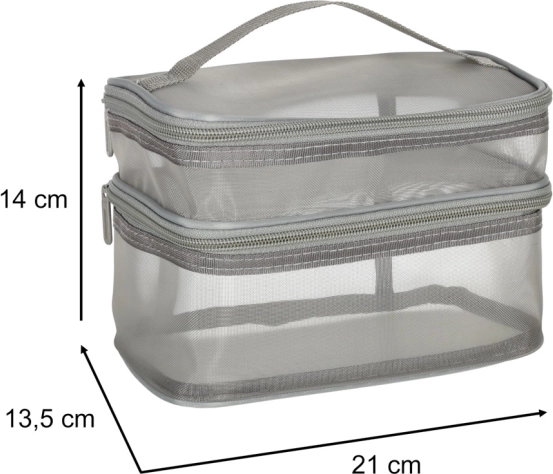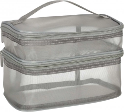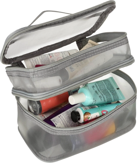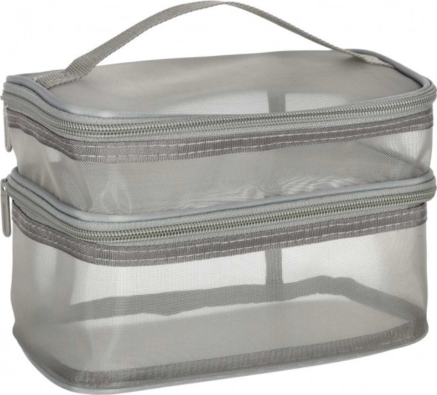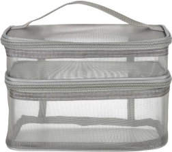 Ez a praktikus kozmetikai táska nélkülözhetetlen kiegészítő minden utazáshoz. Kétrekeszes kialakítása megkönnyíti a kozmetikumok és más személyes tárgyak rendszerezését. Hálós anyagból készült, amely megkönnyíti az elhelyezett termékek megtalálását.