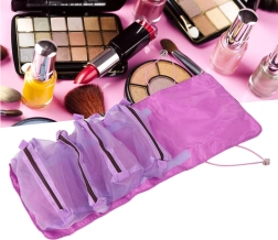 Tökéletes kozmetikumok, ékszerek, higiéniai eszközök és apró kiegészítők számára. A felakasztható horognak köszönhetően könnyen elhelyezhető a fürdőszobában vagy utazás közben. Könnyű textilanyagból, kompakt mérettel – ideális társ kézitáskába, hátizsákba és bőröndbe.