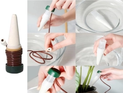 Ez az automatikus öntözőrendszer úgy van kialakítva, hogy növényei folyamatosan hidratáltak legyenek, még akkor is, ha nincs otthon. A kerámia kúpokat a virágcserép talajába helyezik, és az intelligens rendszer révén fokozatosan adagolja a vizet. Ez a módszer ideális azok számára, akiknek nincs idejük naponta öntözni a növényeket, vagy azoknak, akik utaznak, és biztosak szeretnének lenni abban, hogy növényeik megkapják a szükséges gondozást.