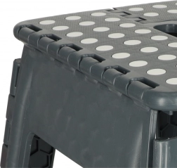 Praktikus, 39,5 cm magas, összecsukható fellépő, amely biztonságos és stabil megemelést nyújt, amikor magasabban kell elérnie valamit. Könnyű műanyag szerkezet csúszásgátló felülettel és legfeljebb 150 kg teherbírással, integrált fogantyúval a könnyű hordozhatóságért és tárolásért.