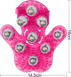 Praktikus masszázskesztyű 9 darab, 360°-ban forgó fémgolyóval, amely azonnali megkönnyebbülést nyújt a fáradt izmoknak és támogatja a jobb vérkeringést. Az ergonomikus forma és az állítható pánt révén tökéletesen illeszkedik a kézre és nem csúszik. Alkalmas száraz és nedves masszázshoz, zuhany alatt is, valamint krémekkel és olajokkal – ideális a nyak, hát, karok és combok masszírozására, és hatékony narancsbőr ellen.