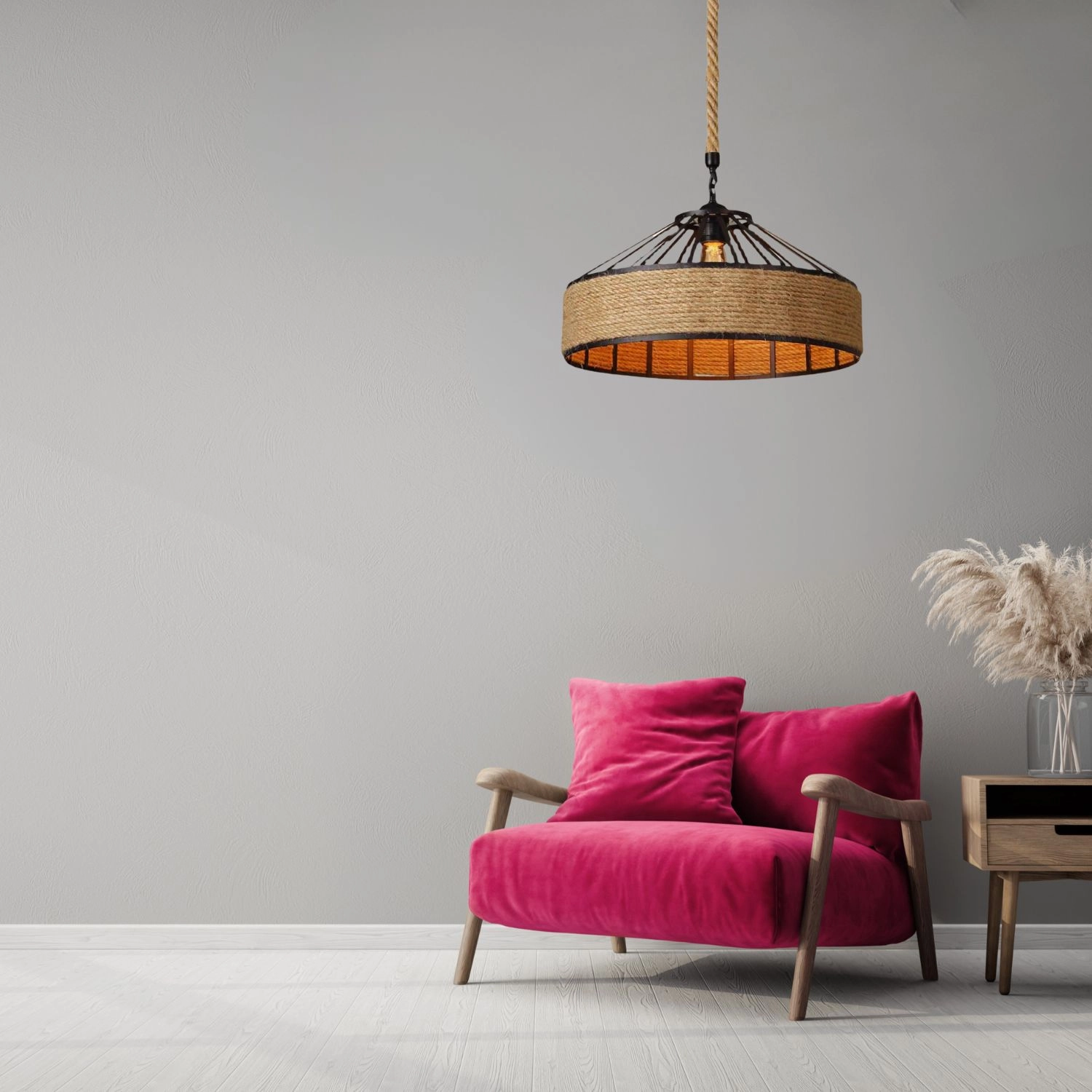 Frissítsd fel otthonod egy karakteres függőlámpával, amely a robusztus fémet természetes kenderkötéllel ötvözi. Egyedi formájának és meleg fényének köszönhetően kiválóan illik a nappaliba, étkezőbe vagy a konyhasziget fölé. Kereskedelmi terekben – kávézóktól a boutique hotelekig – meghitt, emlékezetes atmoszférát teremt.