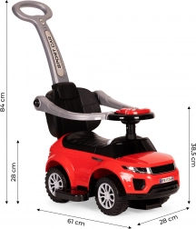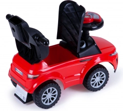 Az ülés alatt praktikus rekesz található, amelyben a kis sofőr szállíthatja „szerszámait”, játékait vagy a sétán talált kincseit.