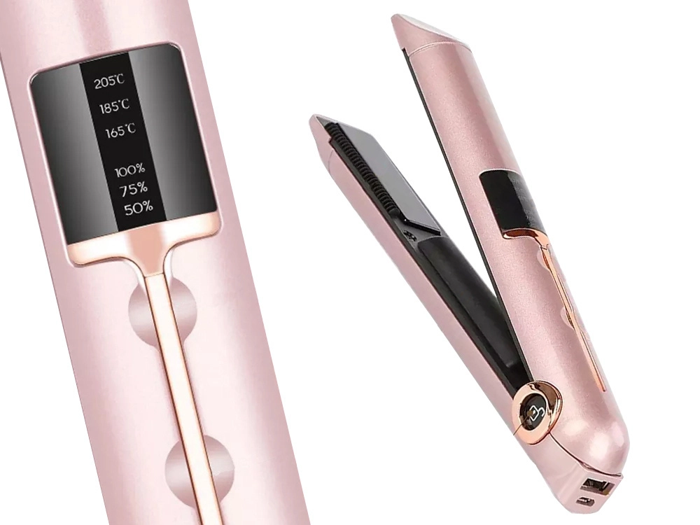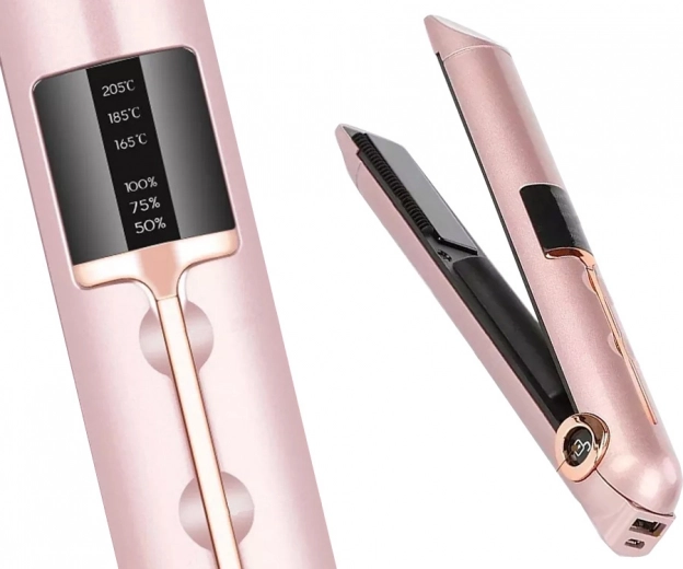 Kompakt, vezeték nélküli hajvasaló kerámialapokkal és LCD kijelzővel a gyors és kíméletes hajformázáshoz bárhol. Kínál 3 hőfokszintet: 165/185/205 °C, gyors felfűtést, sokoldalú 2 az 1-ben stylingot (egyenesítés és hullámok), valamint praktikus powerbank funkciót a telefon töltéséhez. Utazáshoz ideális a USB‑C töltésnek és a kompakt méreteknek köszönhetően.