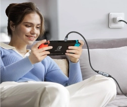 Kompatibilis USB‑C porttal rendelkező telefonokkal, tabletekkel és laptopokkal. Ideális asztali munkához, utazáshoz és játékhoz – a megfelelő hossz szabadságot ad, nem kell a kábelt feszíteni.
