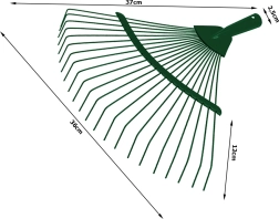 Praktikus legyezőgereblye, 36 cm-es széles munkaszélességgel, amely megkönnyíti a gyep és a kert mindennapos karbantartását. A lakkozott fém hosszú élettartamot és időjárásállóságot biztosít, míg az alacsony tömeg kényelmes munkát tesz lehetővé hosszan tartó használat során is.