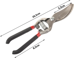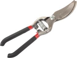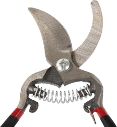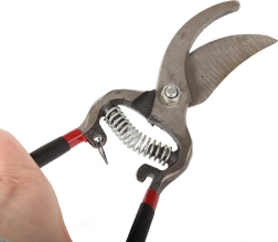 Ez az univerzális kerti metszőolló kovácsolt acélból készült, amely nagy ellenállóképességet és stabil teljesítményt biztosít a mindennapi használat során. Az ergonomikusan formázott, csúszásgátló felületű markolatok kényelmes és biztos fogást adnak, így megerőltetés nélkül érhető el a pontos vágás.