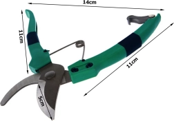 Az integrált biztonsági zár megakadályozza a véletlen kinyílást, míg a rugós mechanizmus megkönnyíti az ismételt vágásokat. Az olló könnyen tisztítható és karbantartható, kiváló választás házikertekbe, üvegházakba és gyümölcsösökbe is.