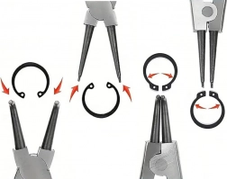 Két pár a belsőhöz és két pár a külső Seeger-biztosítógyűrűkhöz lefedi az autó- és gépipari szervizmunkák túlnyomó részét.