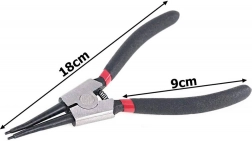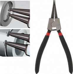 Hasznos Seeger-gyűrűk szerelésénél és bontásánál csapágyakban, hajtóművekben, fékekben vagy kuplungokban. A 18 cm-es kompakt hossz pontos munkát tesz lehetővé szűk helyeken is, míg az ergonomikus forma csökkenti a kézfáradást hosszas használat során.