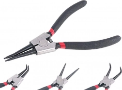 Komplett Seeger-biztosítógyűrű fogókészlet a belső és külső gyűrűk gyors és biztonságos kezeléséhez. Minőségi acéltest és kényelmes, csúszásmentes markolatok a biztos fogásért, míg a egyenes és hajlított hegyek megkönnyítik a munkát a nehezen hozzáférhető helyeken. Ideális auto/motor műhelyekbe, ipari felhasználásra és otthoni műhelybe.