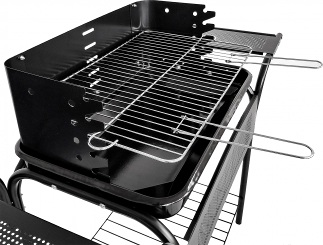 A grill kerekekkel van felszerelve, amelyek megkönnyítik a grill mozgatását a kert különböző pontjaira. Az öt különböző szinten állítható rostély biztosítja, hogy az étel pontosan az elképzelései szerint grilleződjön.