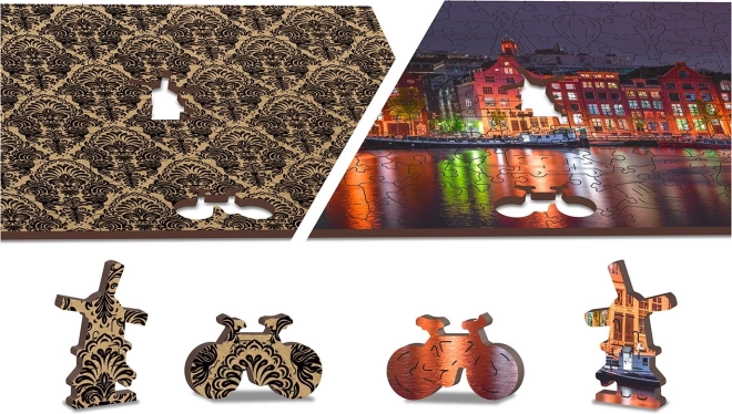 Minden darab nemcsak a teljes rész része, hanem egyedi formájában városi építményeket, állatokat vagy tárgyakat ábrázol. Az összerakás így nagyobb kihívást jelent, ami hozzájárul a szórakozáshoz és kihíváshoz. A puzzle-t továbbá Amszterdam éjszakai jelenete díszíti, amely tökéletesen bele van vésve minden darabba.