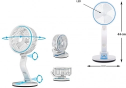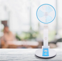 Tartsa kellemesen hűvösen a környezetét bárhol. Ez az elegáns kék színű, összecsukható, vezeték nélküli ventilátor a hatékony, mégis csendes hűtést hasznos LED világítással ötvözi. A fokozatmentes sebességszabályzással könnyedén az aktuális igényekhez igazíthatja a légáramot – a finom szellőtől az intenzívebb felfrissülésig.
