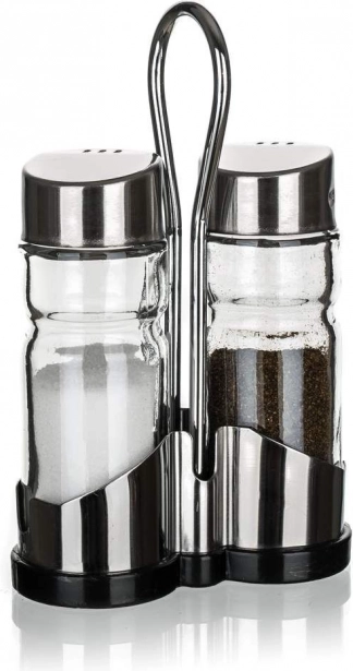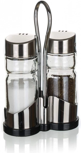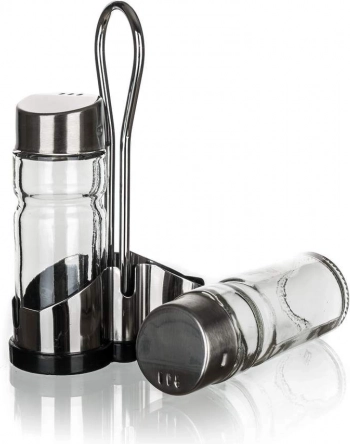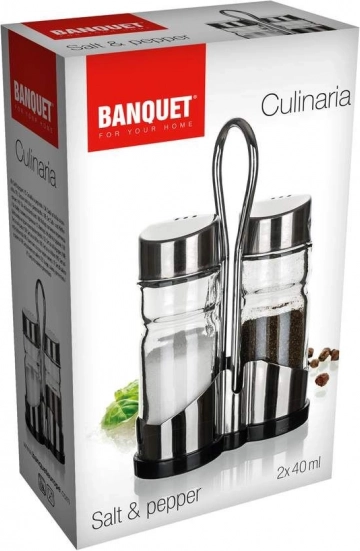 A Banquet só- és bors készlet két darab 40 ml-es üveg edényt tartalmaz, amelyeket egy fém tartóban helyeztek el. Ez az üveg szóró és ezüst tetők kombinációja stílust kölcsönöz az asztalának, és könnyű ízesítést biztosít az ételekhez.