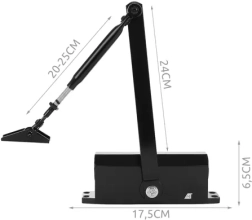 Fekete Malatec ajtócsukó ideális ajtói biztosításához otthonában vagy irodájában. 40-60 kg súlyú ajtókhoz tervezve, ez a mechanikus és hidraulikus rendszer automatizálja az ajtózárási folyamatot, és megakadályozza a nem kívánt becsapódásokat.