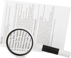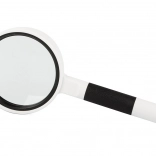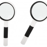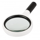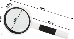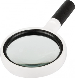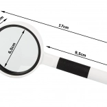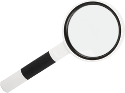 Praktikus kézi nagyító 65 mm-es lencseátmérővel és 6×-os nagyítással a kis betűk kényelmes olvasásához és tárgyak részletes ellenőrzéséhez. Könnyű és tartós kialakítás csúszásmentes fogantyúval, tiszta üveglencsével és fekete–fehér kivitelben, otthoni, irodai és műhelyhasználatra egyaránt.