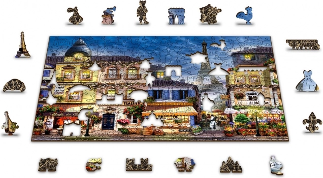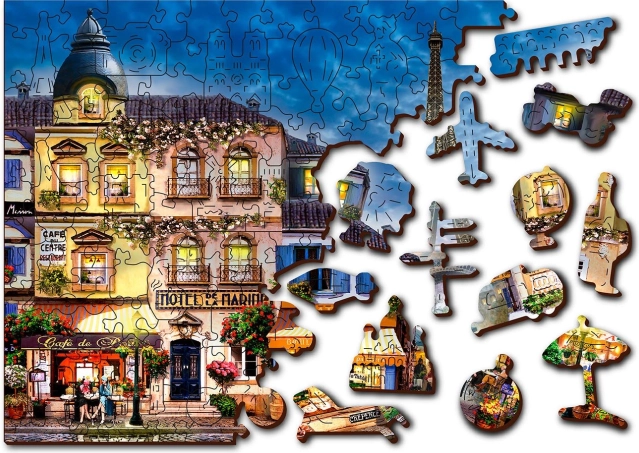 A WOODEN CITY fa puzzle kirakós szórakozása garantált a speciális formájú daraboknak köszönhetően, amelyek egyedi kirakó élményt nyújtanak. A puzzle elemei állat, épület és tárgy alakú darabokat tartalmaznak, amelyeket apró figuraként is használhatunk. A kétoldalúság lehetővé teszi a kirakást kép vagy forma alapján, ami nagyobb kihívást jelent.