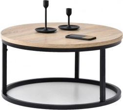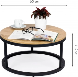 Vigyen könnyedséget és ipari stílusú karaktert a belső térbe. A 60 cm átmérőjű kerek dohányzóasztal kompakt méreteinek köszönhetően kisebb és tágasabb helyiségekbe is illik. A fa dekor és a fekete acél időtálló párosa remekül illeszkedik modern és klasszikus bútoregyüttesekhez.