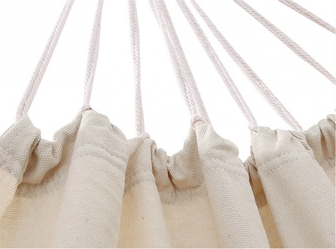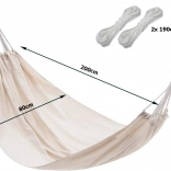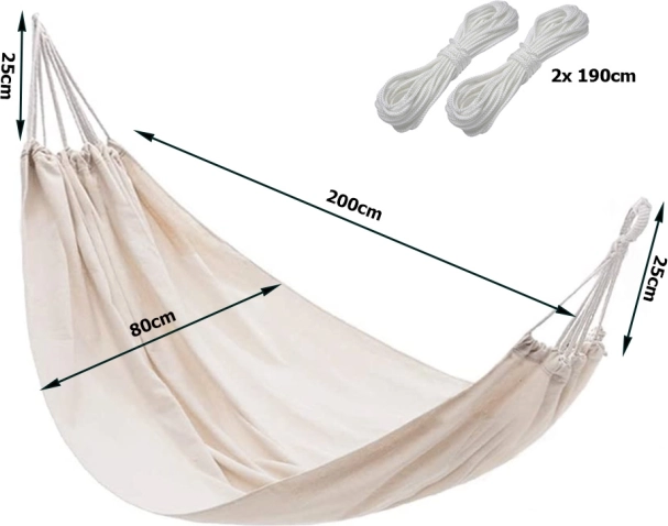 - Ideális méretek: 200 × 80 cm (szövet), teljes hossz kötelekkel kb. 250 cm.