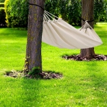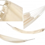 Élvezze a pihenést a friss levegőn ebben a tartós textilből készült kényelmes függőágyban. A strapabíró, poliészterrel kevert pamutnak, a max. 200 kg teherbírásnak és a praktikus táskának köszönhetően ideális kertbe, teraszra és kirándulásokra is. A mellékelt kötél segítségével könnyen felfüggeszthető, használat után pedig gyorsan összepakolható a kompakt tokba.