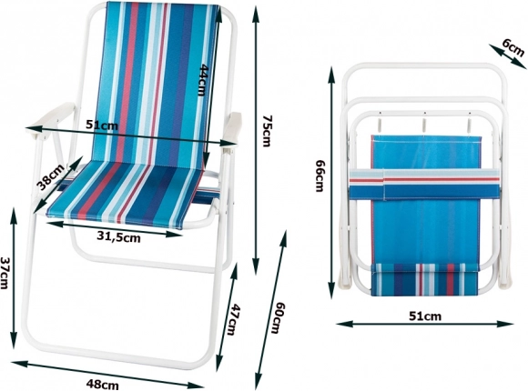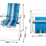 Élvezze a pihenést vízparton, a kertben vagy a kempingben a könnyen tárolható, csíkos huzatú székkel. A könnyű szerkezetnek, a szerszám nélküli, gyors nyitásnak és a stabil acélváznak köszönhetően bárhol kényelmet nyújt – a strandtól a sátorig.