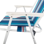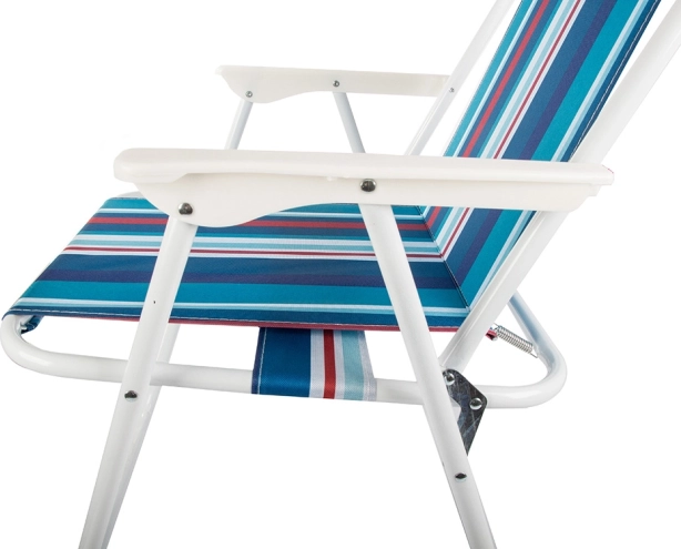 A széles kartámlák és az ülőfelület valamint háttámla kellemes textilje egész napos komfortot biztosít vízparton vagy a kempingben.